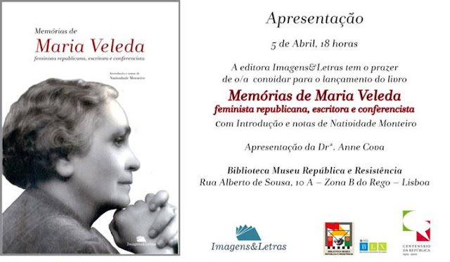 Um sentido obrigado à Natividade Monteiro e a Maria José Guerreiro da Franca, bisneta de Maria Veleda, pela excelente edição das Memórias de Maria Veleda e pela comovente e familiar sessão realizada hoje na Biblioteca Museu República e Resistência, que contou também com a presença das netas Maria Leonor e Maria Ester, contribuindo, assim, para perpetuar a memória desta invulgar republicana.